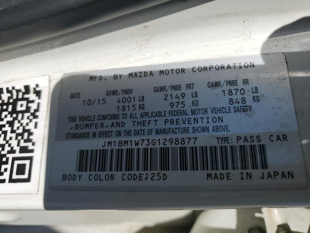 MAZDA 3 2.0 2016 г.в., (JM1BM1W73G1298877) из США