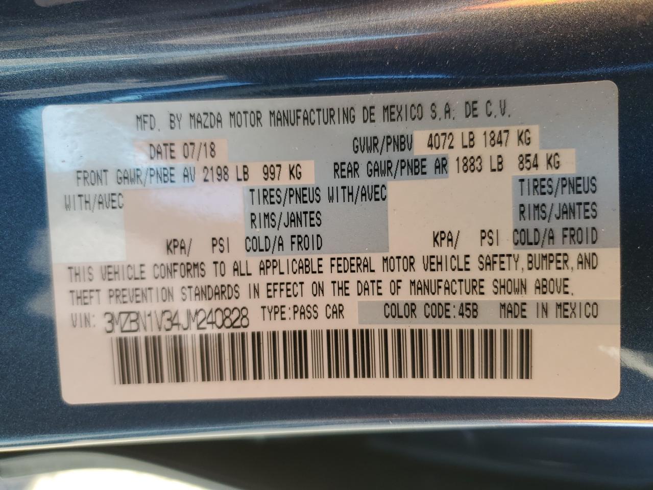 MAZDA 3 2.5 2018 г.в., (3MZBN1V34JM240828) из США