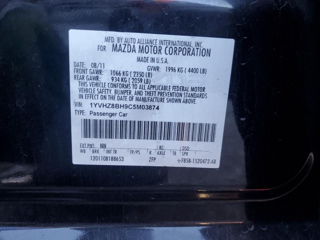 Цвет ЧерныйЦилиндры 4VIN 1YVHZ8BH9C5M03874Состояние НеизвестноПовреждение Передняя или задняяДата аукциона 2025-11-11