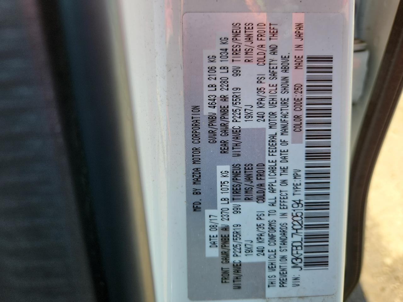 MAZDA CX-5 2.5 2017 г.в., Полный привод (JM3KFBDL7H0205194) из США
