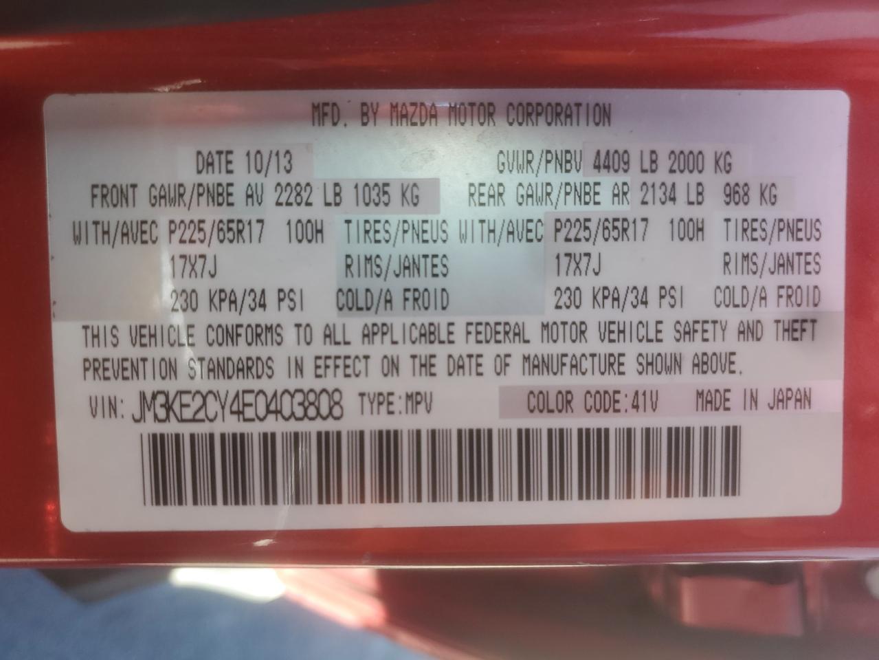 Цвет КрасныйЦилиндры 4VIN JM3KE2CY4E0403808Состояние Заводится и едет (проверено)Повреждение НезначительныеДата аукциона 2025-11-03