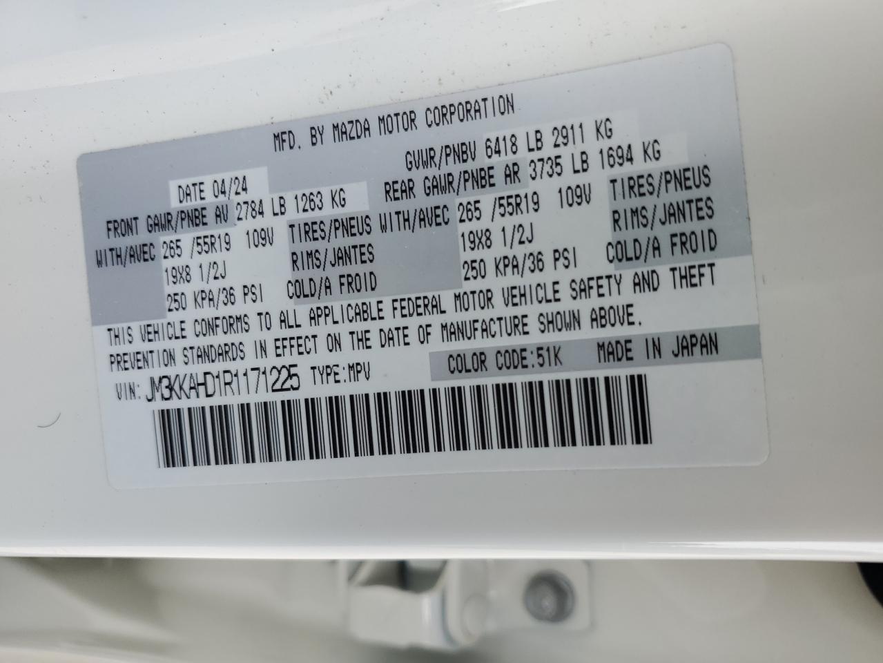 MAZDA CX-90 3.3 2024 г.в., Полный привод (JM3KKAHD1R1171225) из США