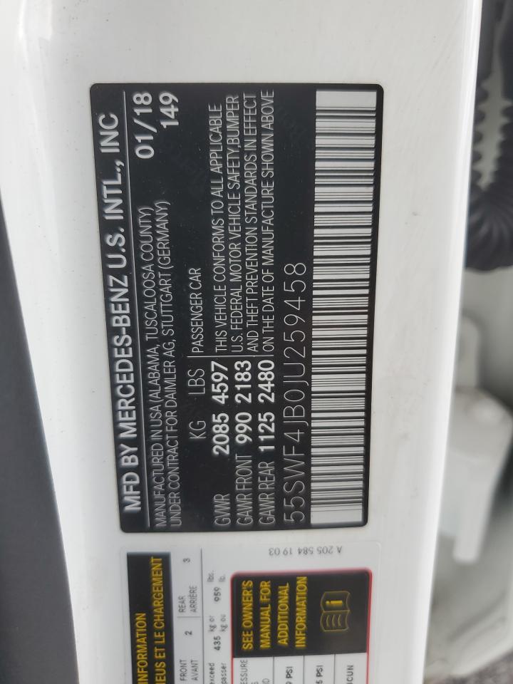 MERCEDES-BENZ C-CLASS 2.0 2018 г.в., Задний привод (55SWF4JB0JU259458) из США