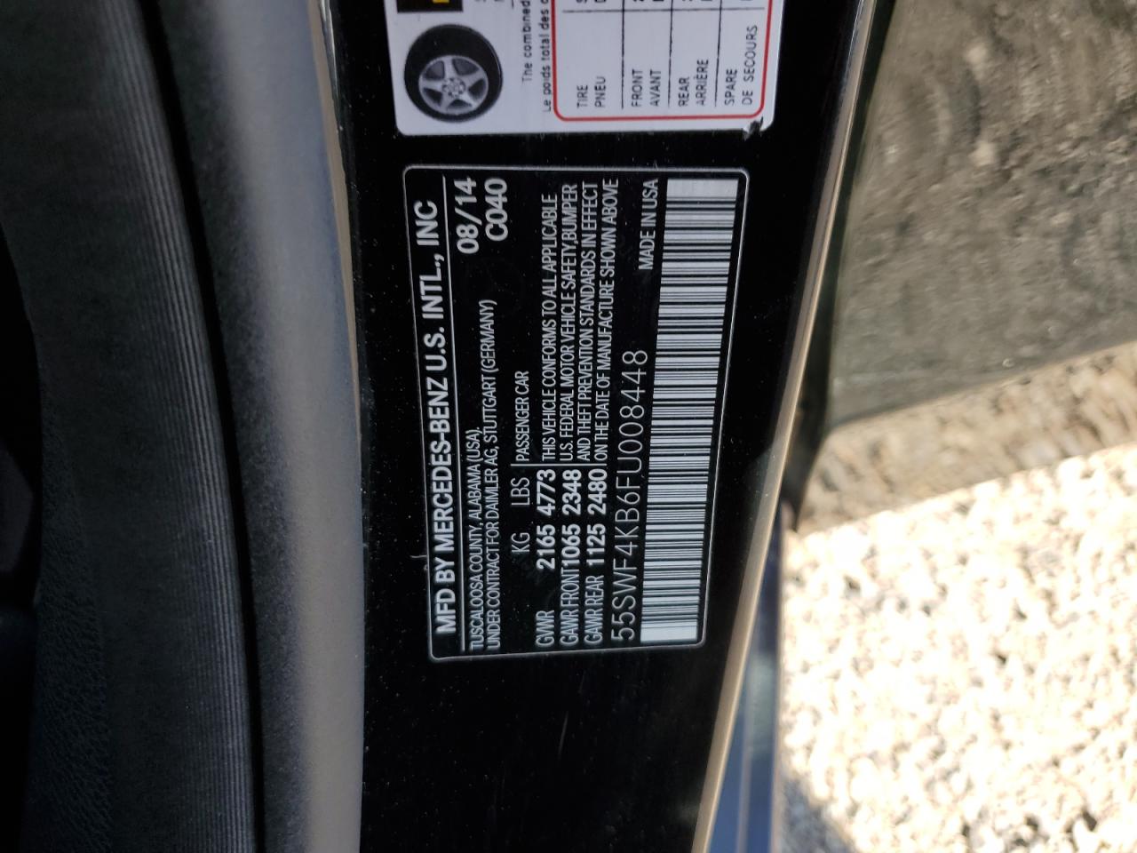 MERCEDES-BENZ C-CLASS 2.0 2015 г.в., Полный привод (55SWF4KB6FU008448) из США