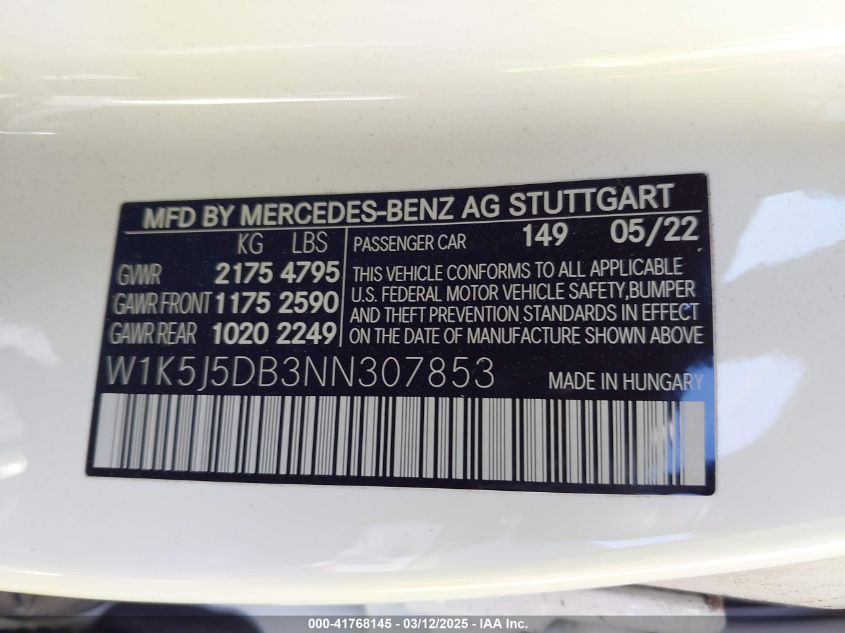MERCEDES-BENZ CLA-CLASS 2.0 2022 г.в., Полный привод (W1K5J5DB3NN307853) из США