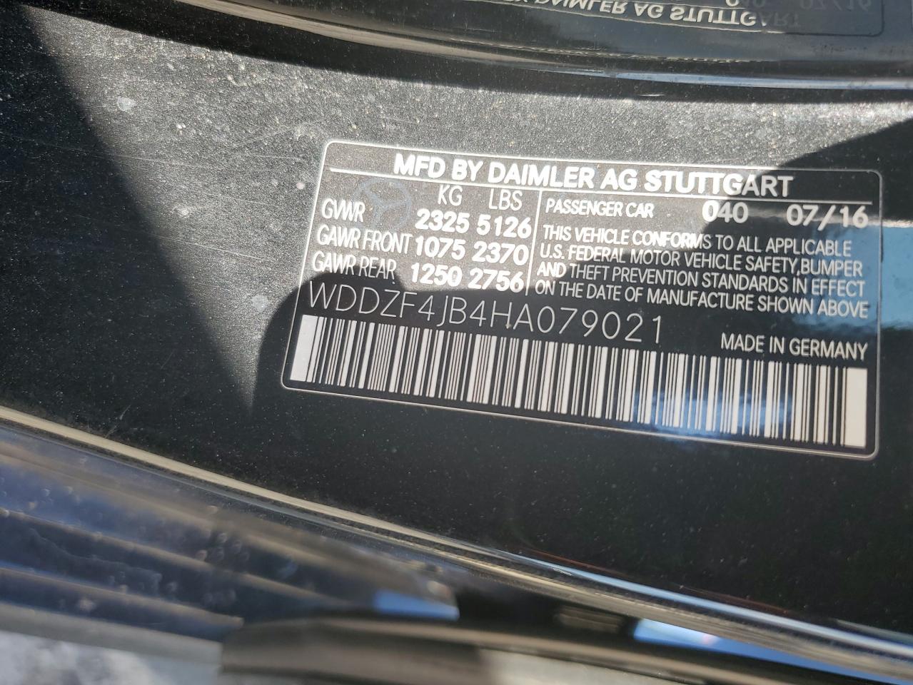MERCEDES-BENZ E-CLASS 2.0 2017 г.в., Задний привод (WDDZF4JB4HA079021) из США