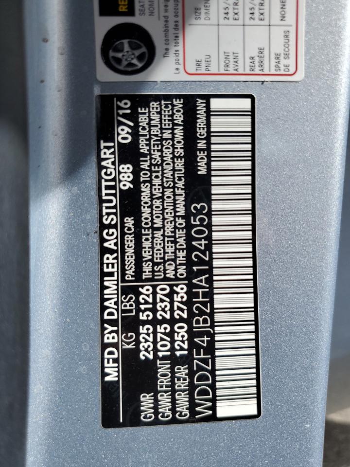 MERCEDES-BENZ E-CLASS 2.0 2017 г.в., Задний привод (WDDZF4JB2HA124053) из США