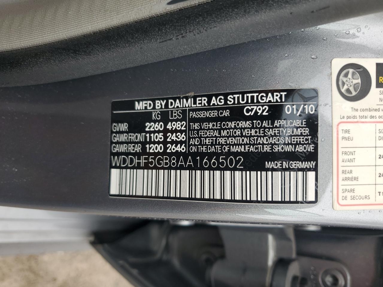MERCEDES-BENZ E-CLASS 3.5 2010 г.в., Задний привод (WDDHF5GB8AA166502) из США