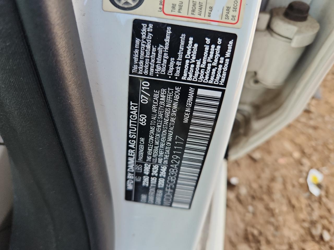 MERCEDES-BENZ E-CLASS 3.5 2011 г.в., Задний привод (WDDHF5GB3BA291117) из США