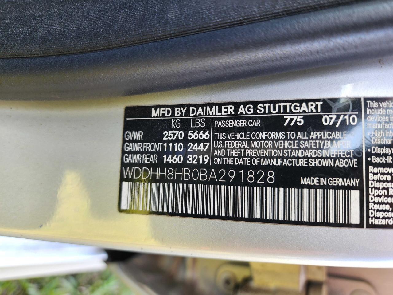 MERCEDES-BENZ E-CLASS 3.5 2011 г.в., Полный привод (WDDHH8HB0BA291828) из США