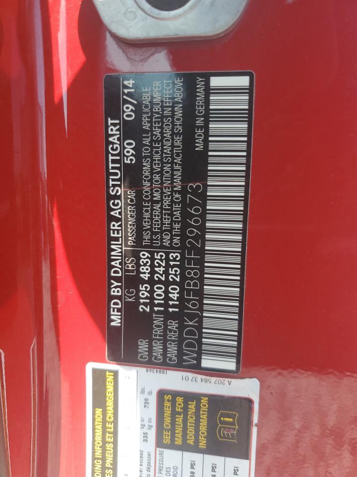 MERCEDES-BENZ E-CLASS 3.0 2015 г.в., Задний привод (WDDKJ6FB8FF296673) из США