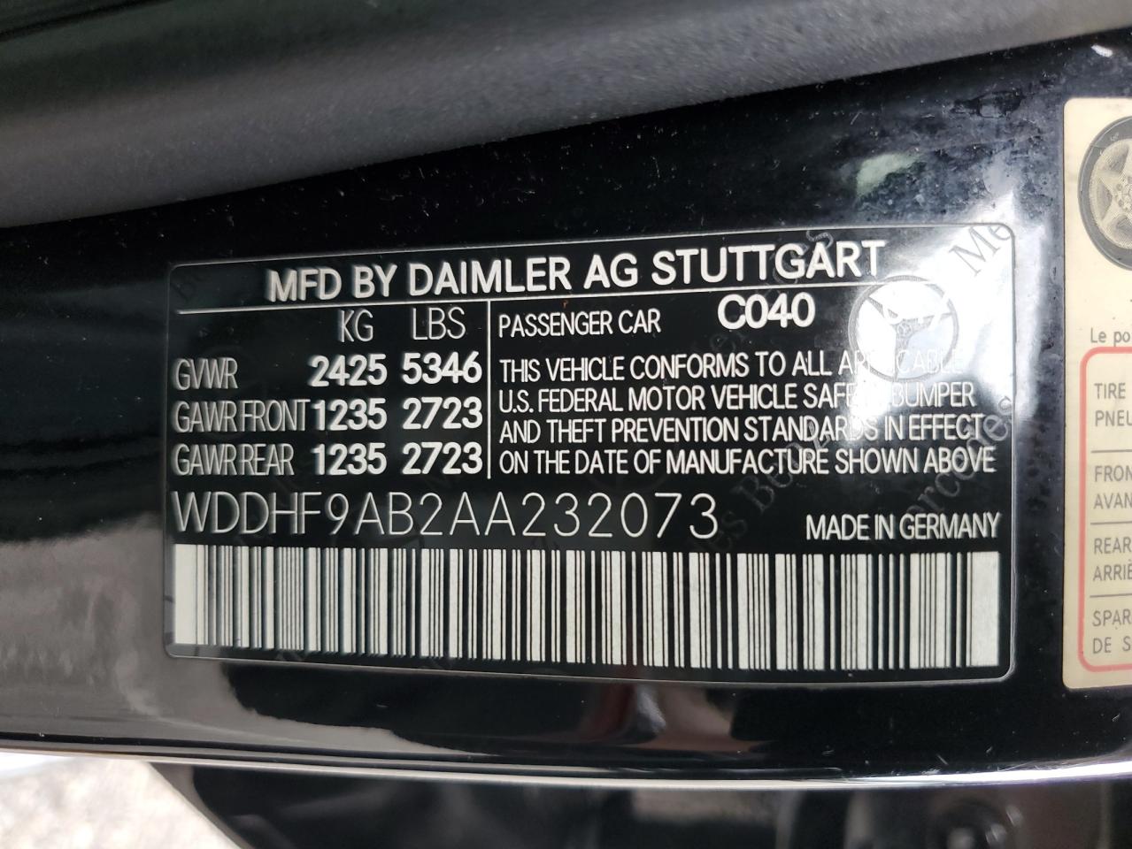 MERCEDES-BENZ E-CLASS 5.5 2010 г.в., Полный привод (WDDHF9AB2AA232073) из США