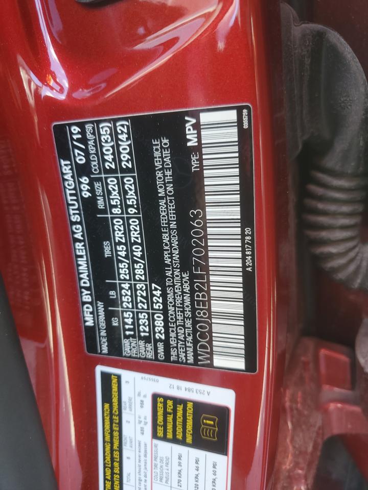 MERCEDES-BENZ GLC-CLASS 2.0 2020 г.в., Полный привод (WDC0J8EB2LF702063) из США