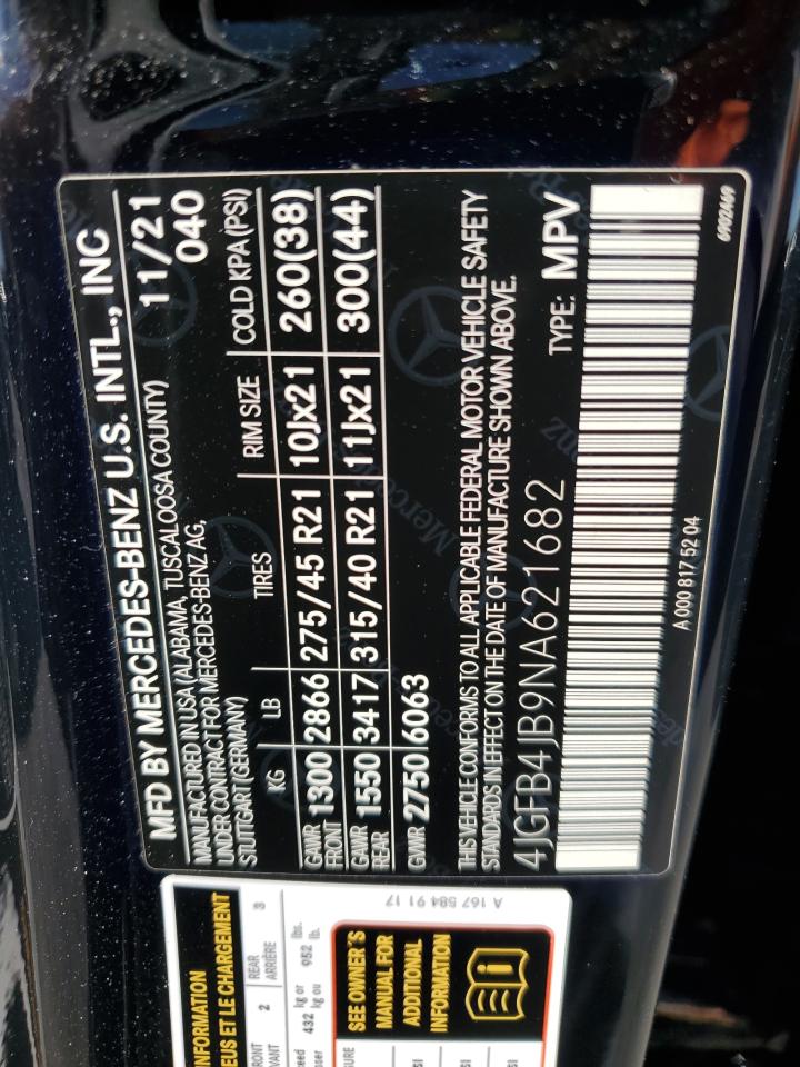 MERCEDES-BENZ GLE-CLASS 2.0 2022 г.в., Задний привод (4JGFB4JB9NA621682) из США