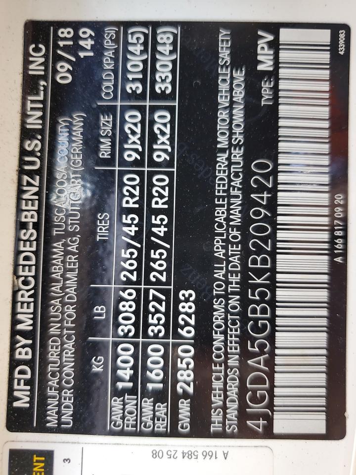 MERCEDES-BENZ GLE-CLASS 3.0 2019 г.в., Полный привод (4JGDA5GB5KB209420) из США