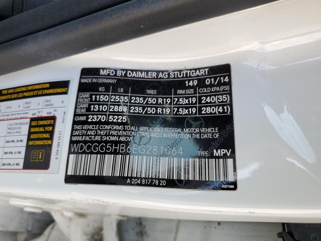Цвет БелыйЦилиндры 6Привод Задний приводVIN WDCGG5HB6EG281064Состояние НеизвестноПовреждение По бокамДата аукциона 2025-11-06