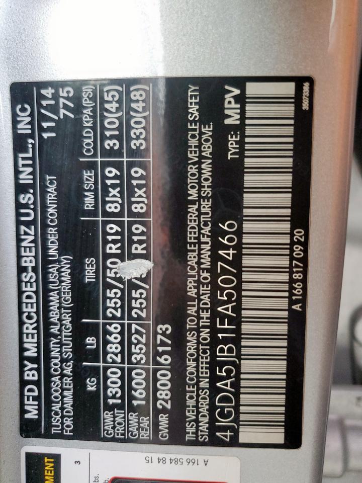 MERCEDES-BENZ M-CLASS 3.5 2015 г.в., Задний привод (4JGDA5JB1FA507466) из США