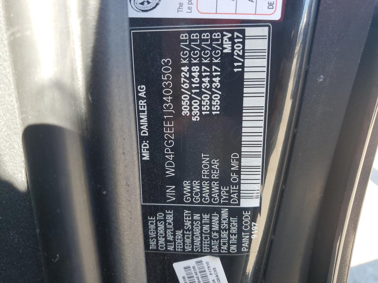 MERCEDES-BENZ METRIS 2.0 2018 г.в., Задний привод (WD4PG2EE1J3403503) из США