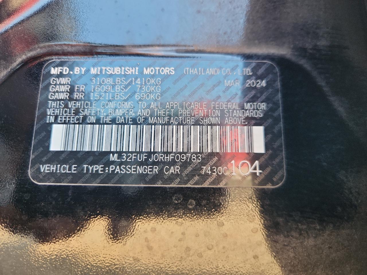 MITSUBISHI MIRAGE 1.2 2024 г.в., (ML32FUFJ0RHF09783) из США