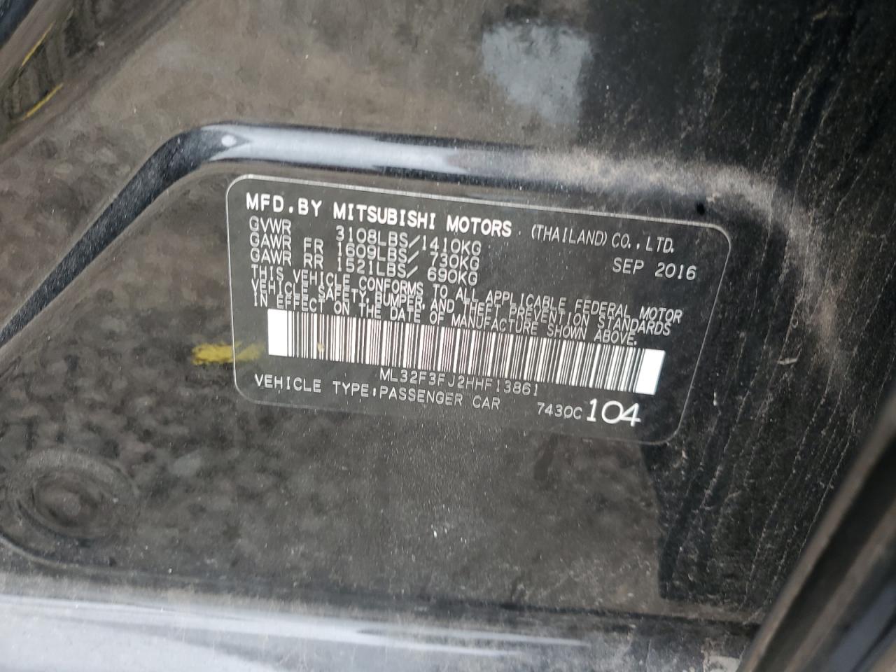 MITSUBISHI MIRAGE 1.2 2017 г.в., (ML32F3FJ2HHF13861) из США