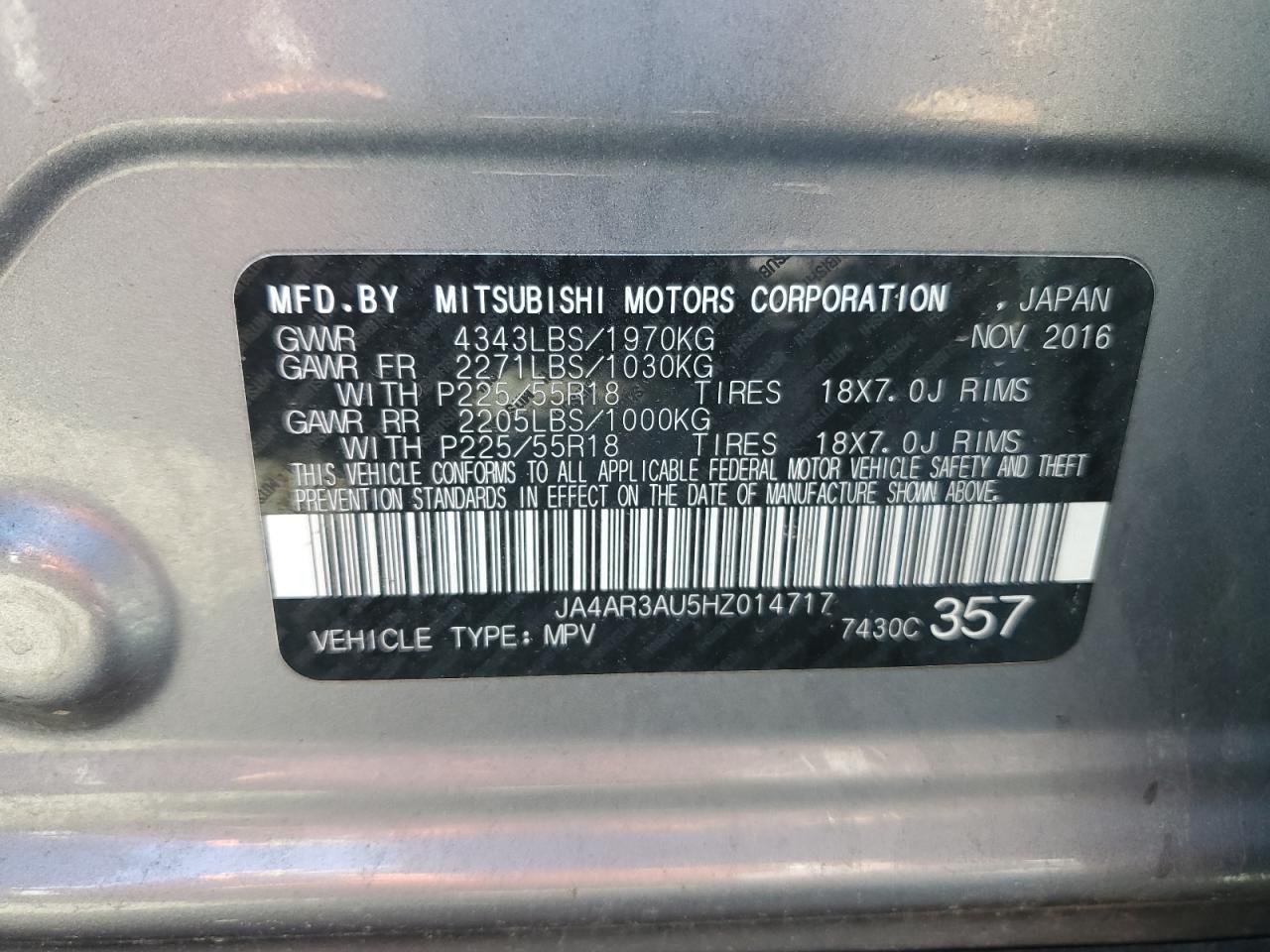 MITSUBISHI OUTLANDER 2.0 2017 г.в., Полный привод (JA4AR3AU5HZ014717) из США