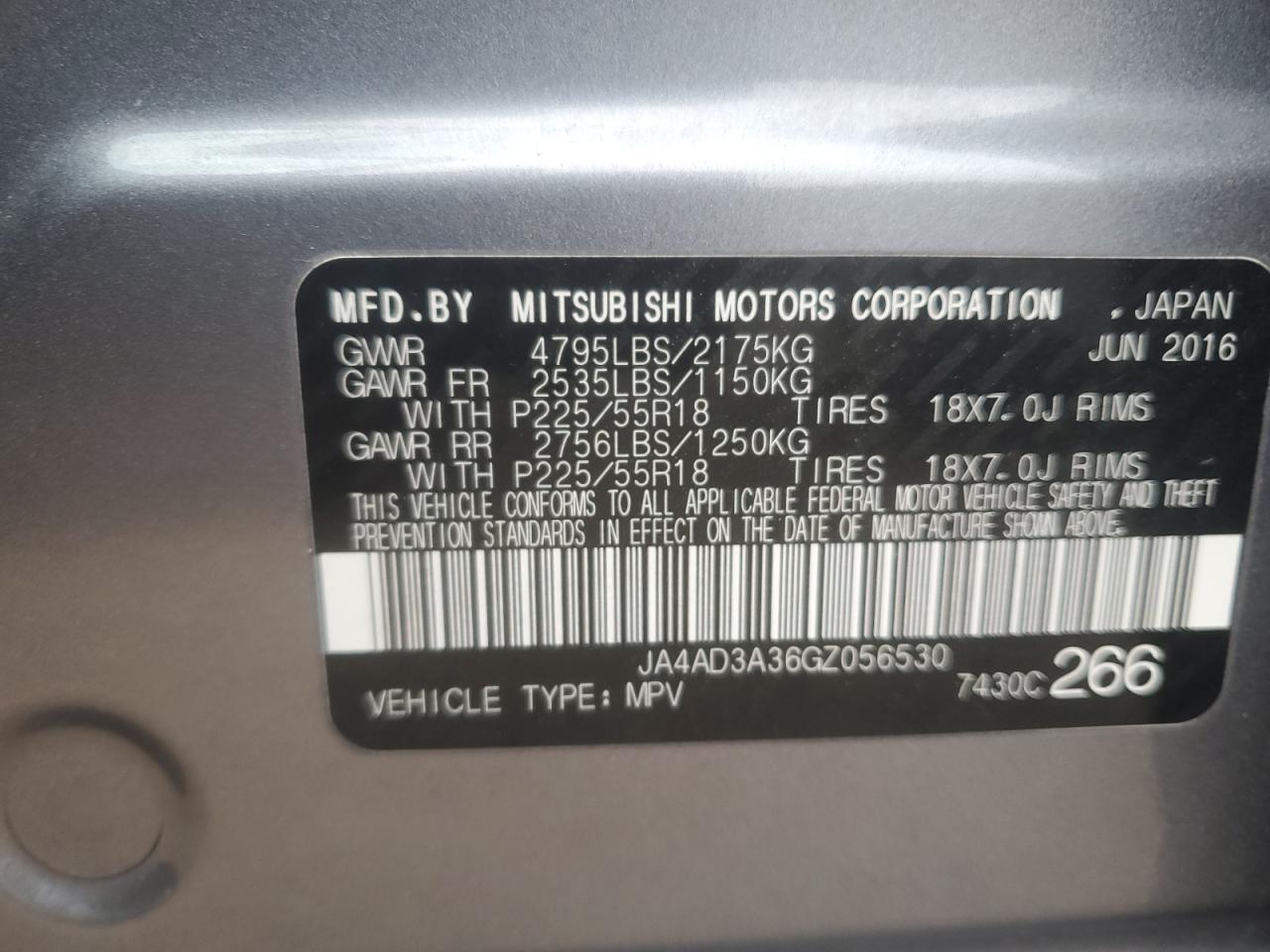 MITSUBISHI OUTLANDER 2.4 2016 г.в., (JA4AD3A36GZ056530) из США