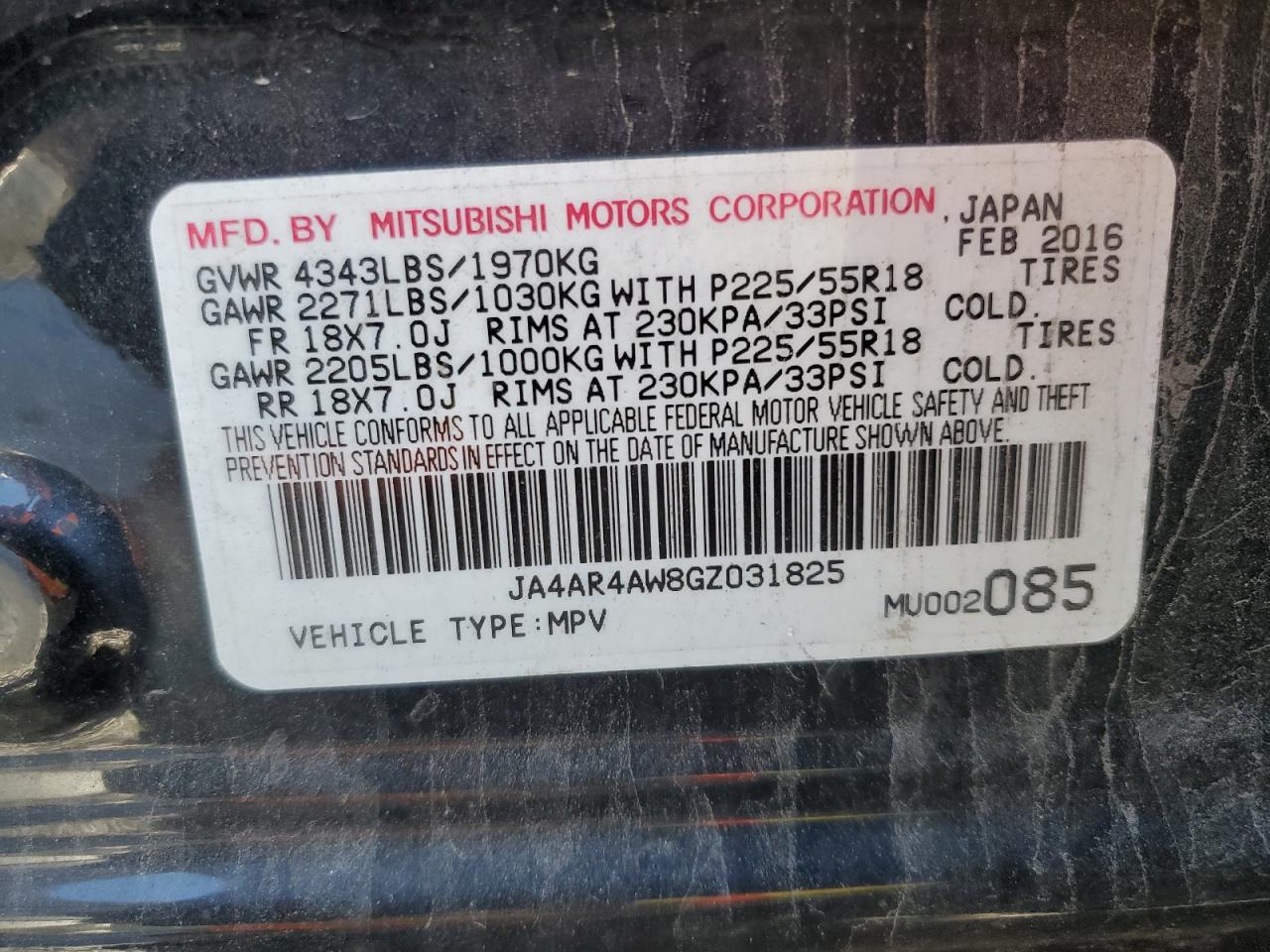 MITSUBISHI OUTLANDER 2.4 2016 г.в., Полный привод (JA4AR4AW8GZ031825) из США