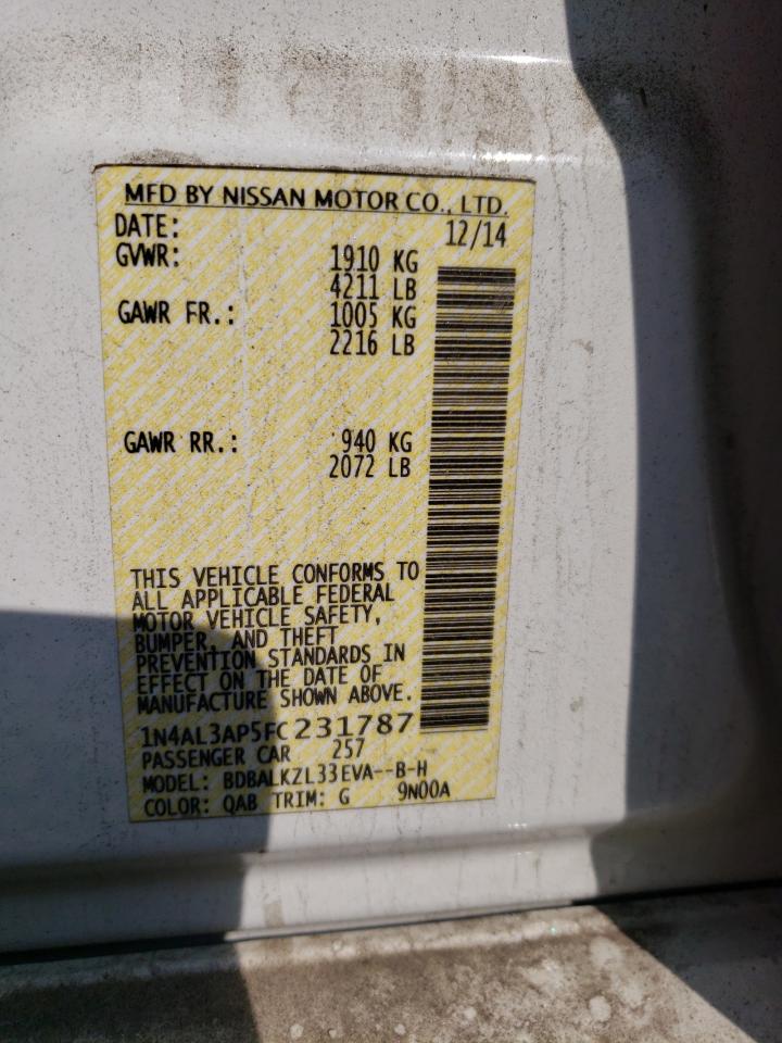 NISSAN ALTIMA 2.5 2015 г.в., (1N4AL3AP5FC231787) из США