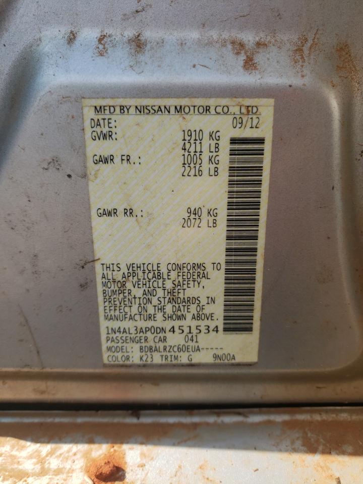 NISSAN ALTIMA 2.5 2013 г.в., (1N4AL3AP0DN451534) из США