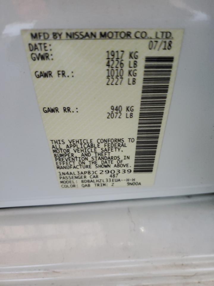 Цвет БелыйЦилиндры 4VIN 1N4AL3AP8JC290339Состояние Заводится и едет (проверено)Повреждение Передняя или задняя