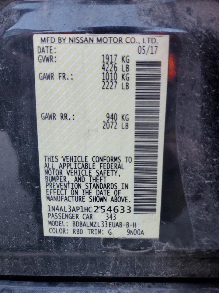 NISSAN ALTIMA 2.5 2017 г.в., (1N4AL3AP1HC254633) из США