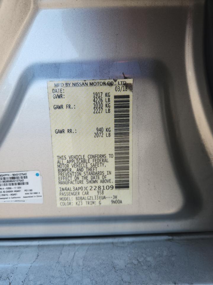 NISSAN ALTIMA 2.5 2018 г.в., (1N4AL3AP0JC228109) из США
