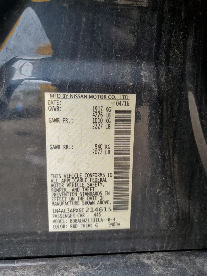 NISSAN ALTIMA 2.5 2016 г.в., (1N4AL3APXGC214615) из США