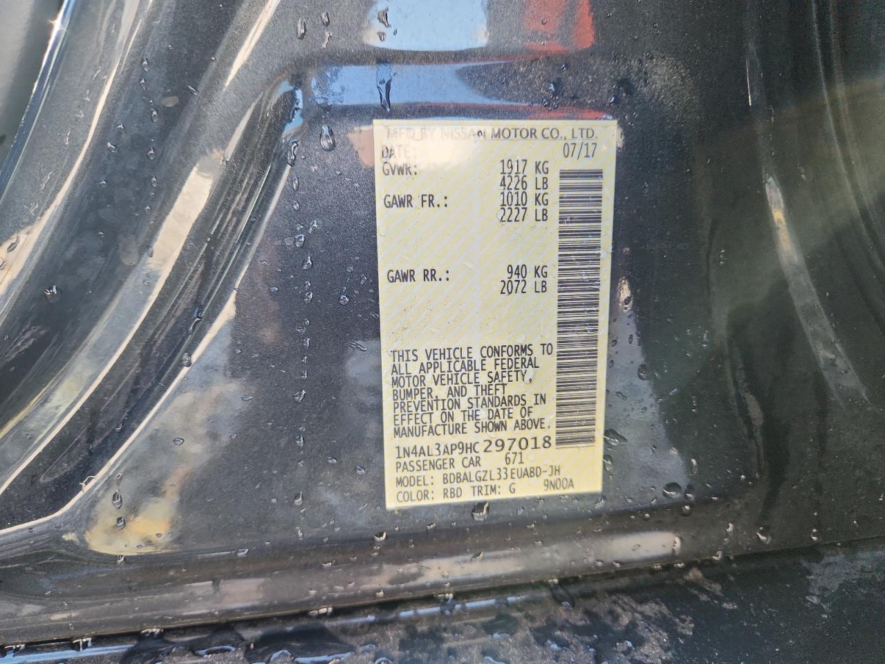 NISSAN ALTIMA 2.5 2017 г.в., (1N4AL3AP9HC297018) из США