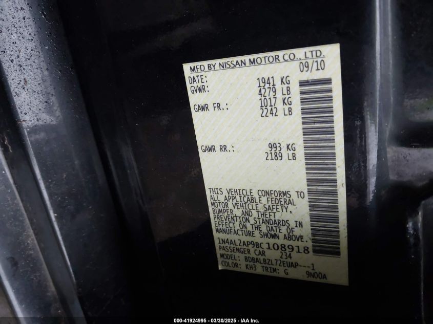 NISSAN ALTIMA 2.5 2011 г.в., Передний привод (1N4AL2AP9BC108918) из США