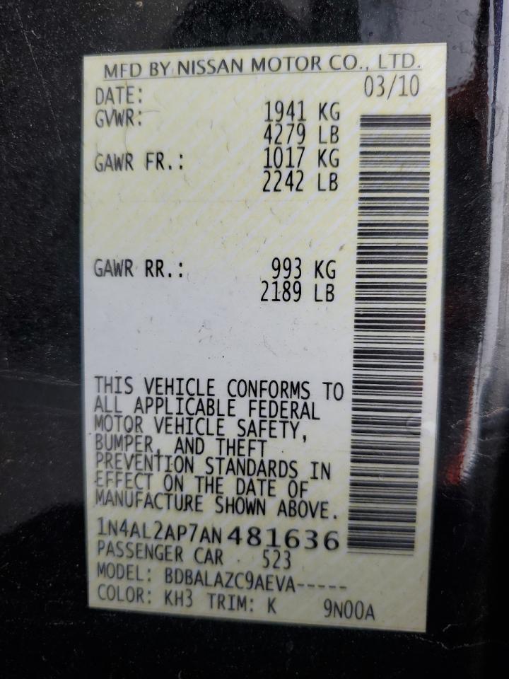 NISSAN ALTIMA 2.5 2010 г.в., (1N4AL2AP7AN481636) из США