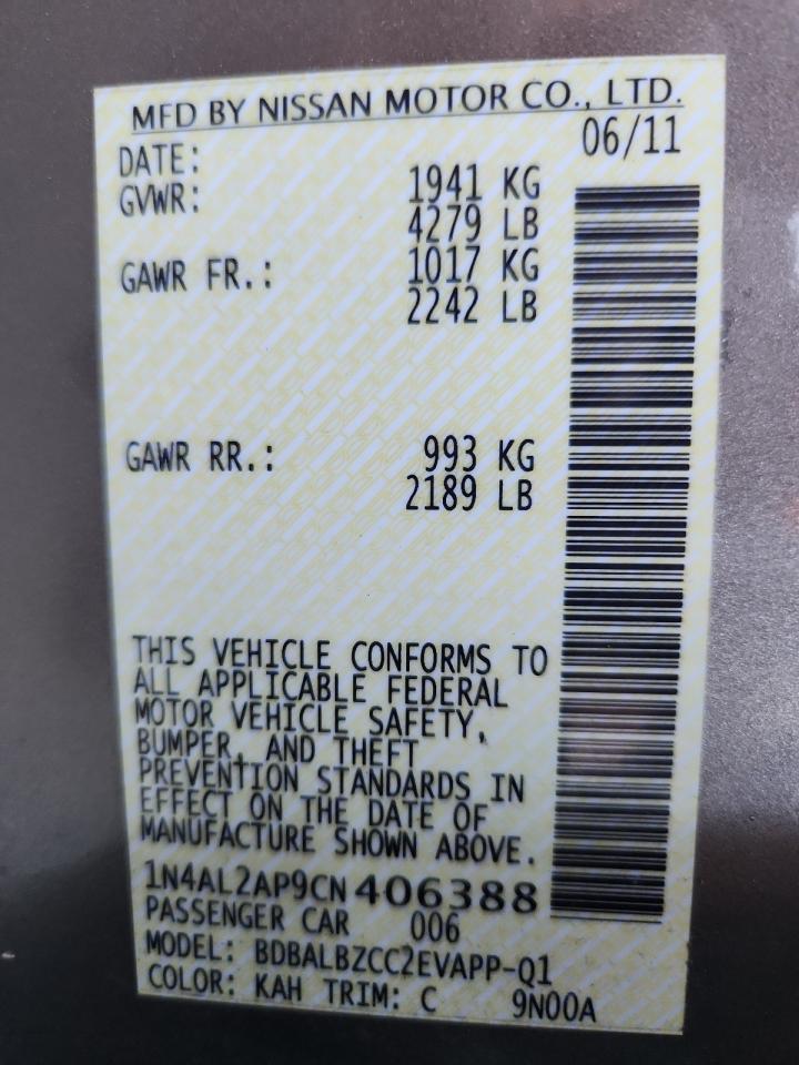 Цвет БежевыйЦилиндры 4VIN 1N4AL2AP9CN406388Состояние Заводится и едет (проверено)Повреждение Передняя или задняя