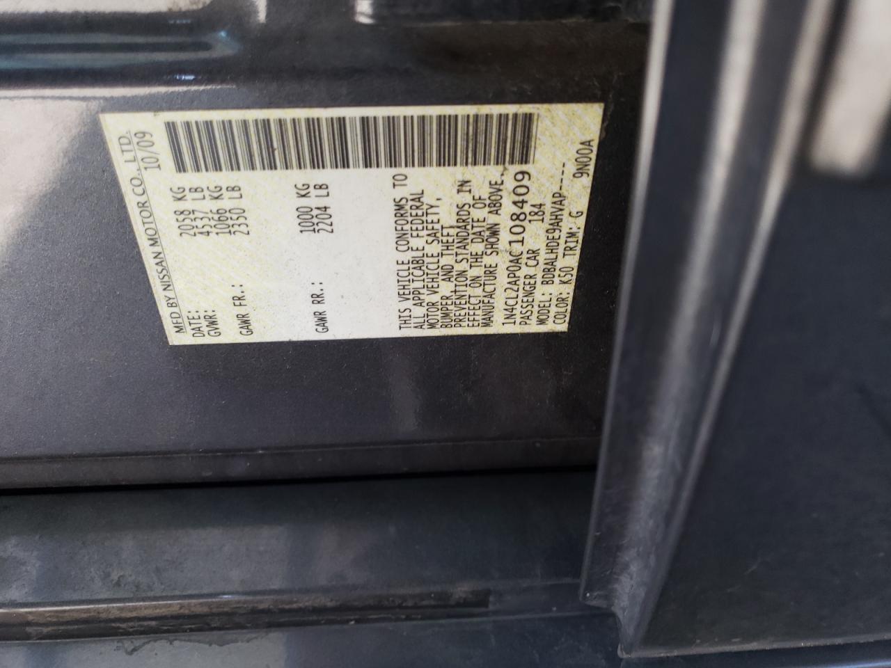 NISSAN ALTIMA 2.5 2010 г.в., (1N4CL2AP0AC108409) из США