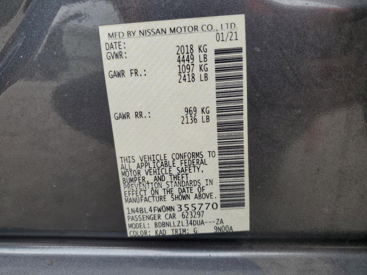 NISSAN ALTIMA 2.5 2021 г.в., Полный привод (1N4BL4FW0MN355770) из США