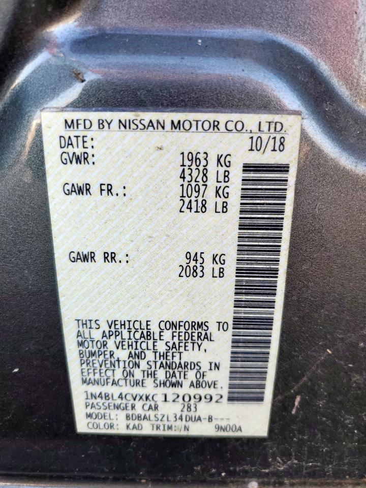 NISSAN ALTIMA 2.5 2019 г.в., (1N4BL4CVXKC120992) из США