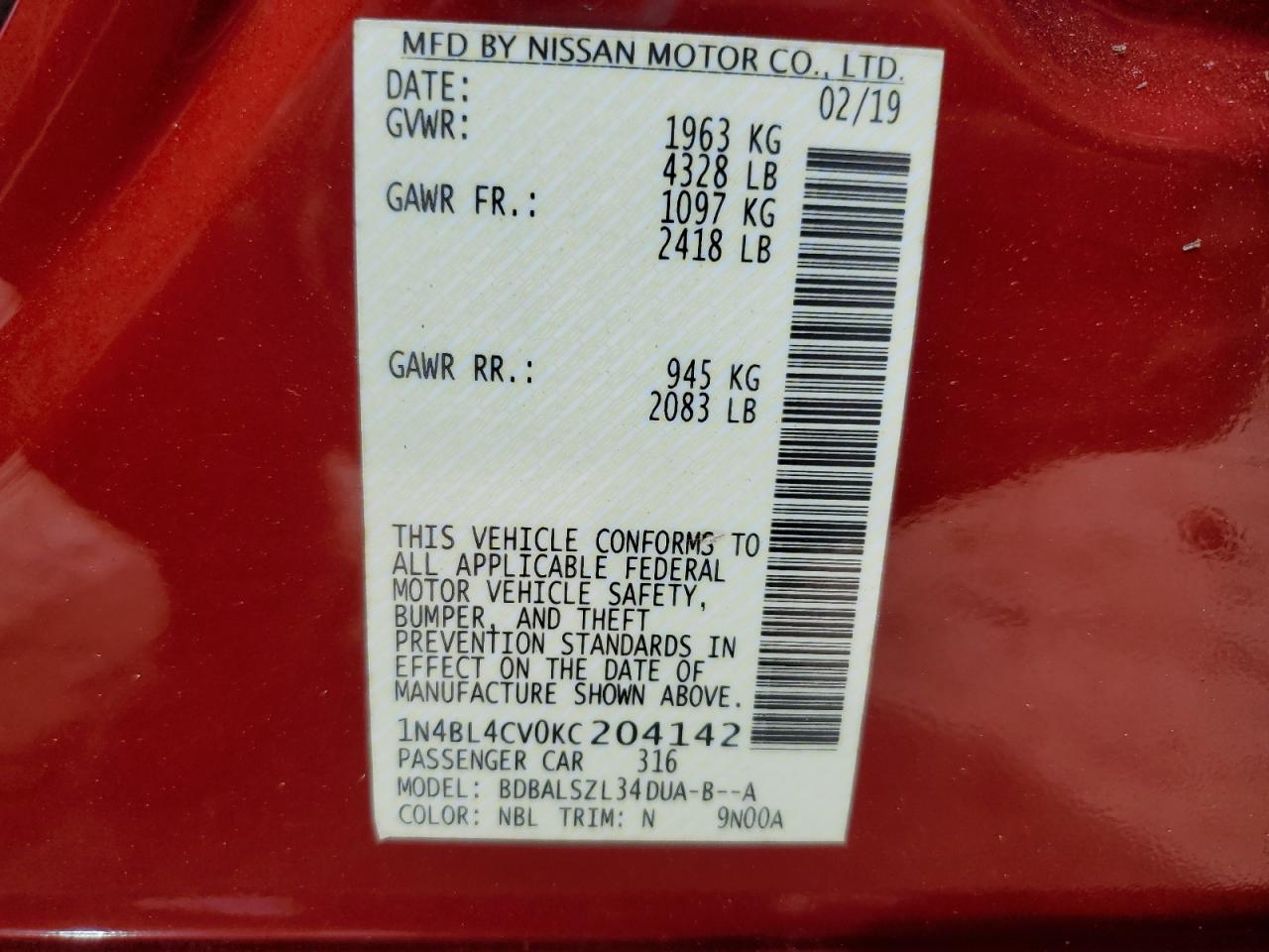 Цвет КрасныйЦилиндры 4VIN 1N4BL4CV0KC204142Состояние НеизвестноПовреждение Передняя или задняя