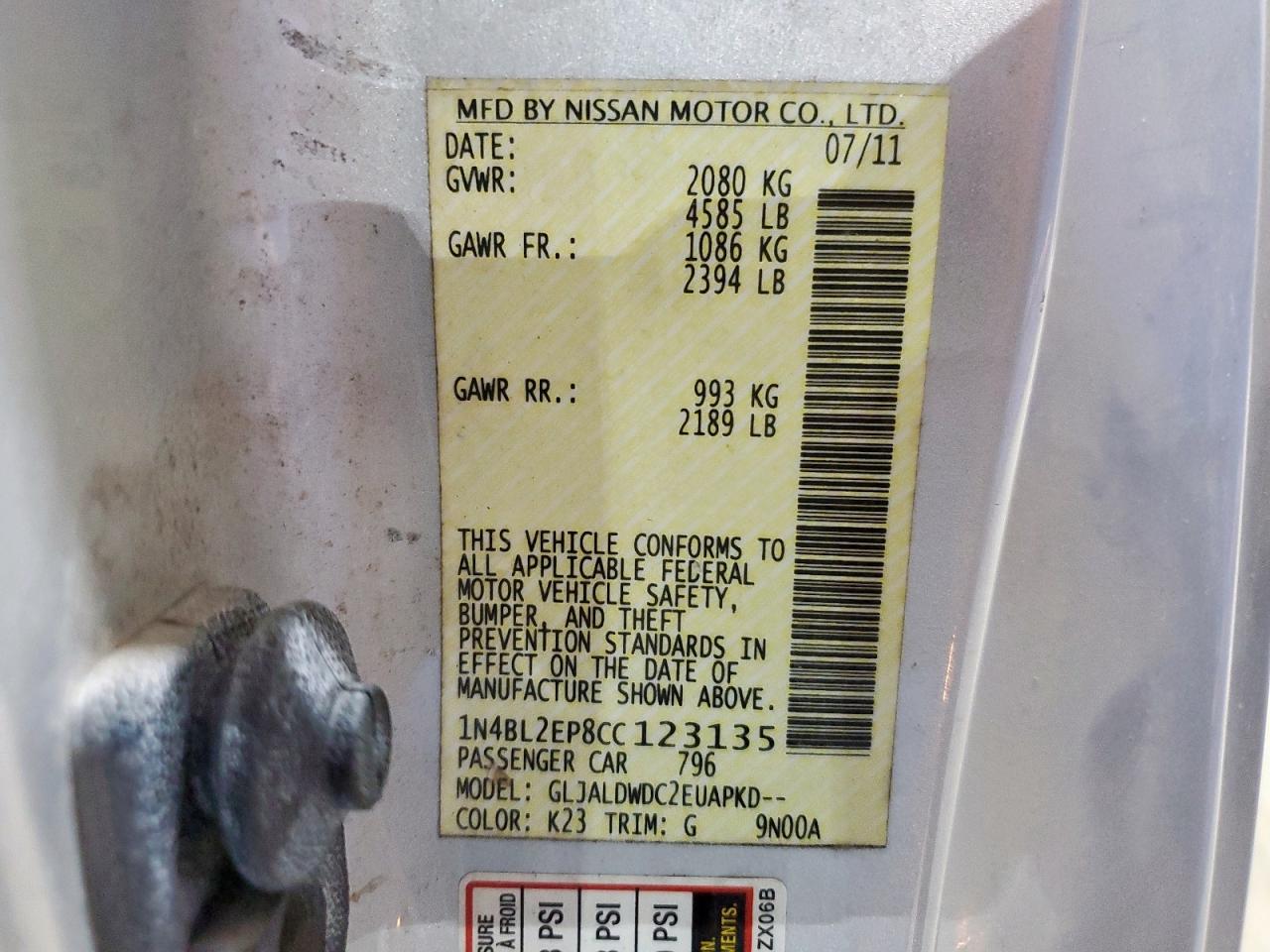 NISSAN ALTIMA 3.5 2012 г.в., (1N4BL2EP8CC123135) из США