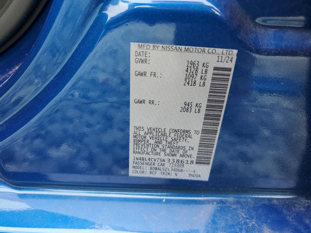 NISSAN ALTIMA 2.5 2025 г.в., (1N4BL4CV7SN338618) из США
