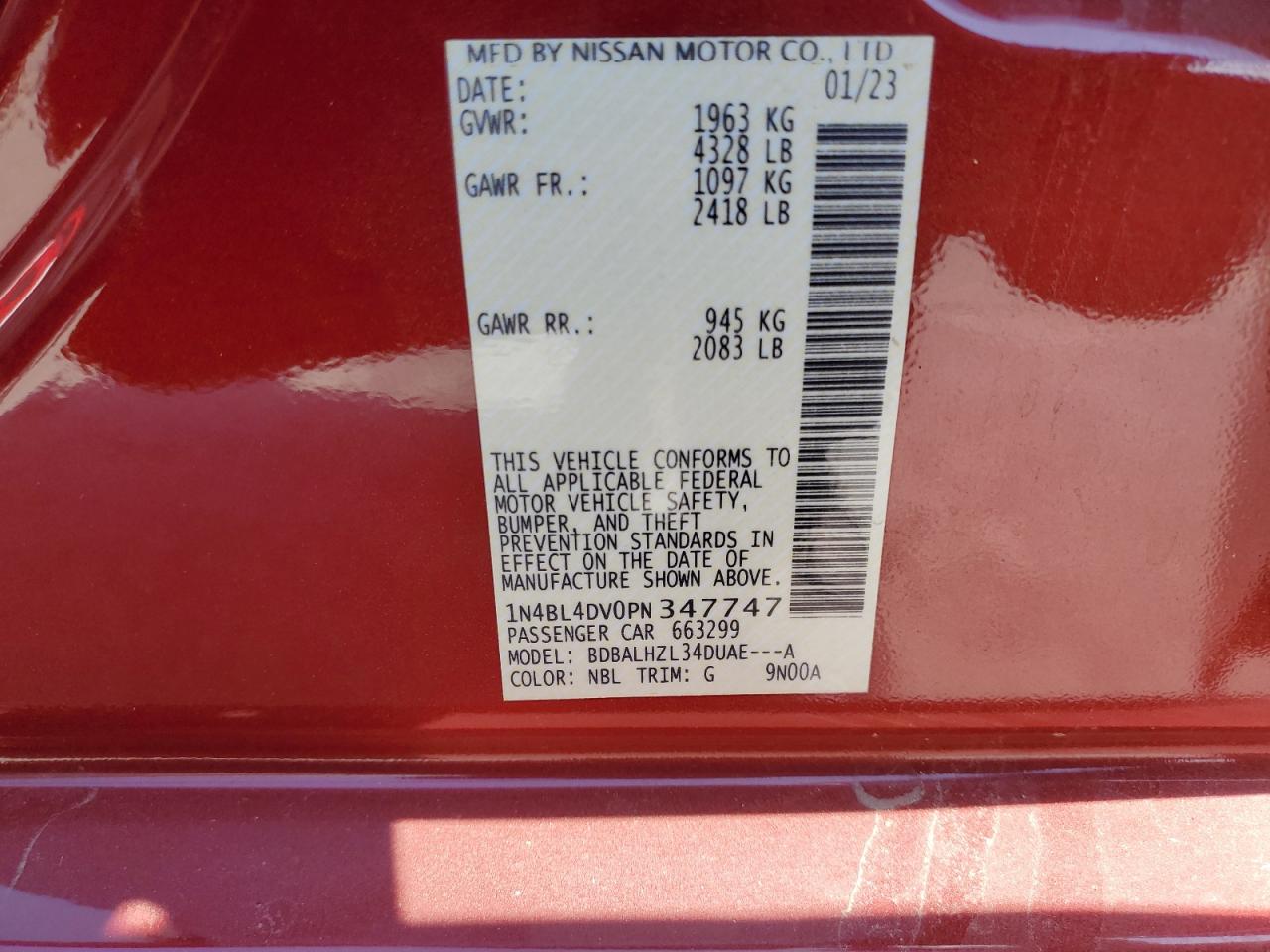 NISSAN ALTIMA 2.5 2023 г.в., (1N4BL4DV0PN347747) из США