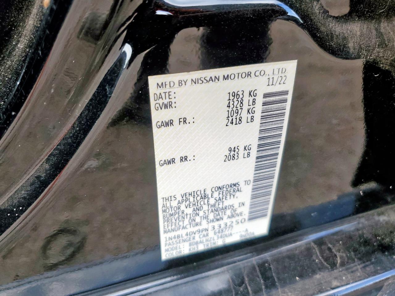 NISSAN ALTIMA 2.5 2023 г.в., (1N4BL4DV9PN333250) из США