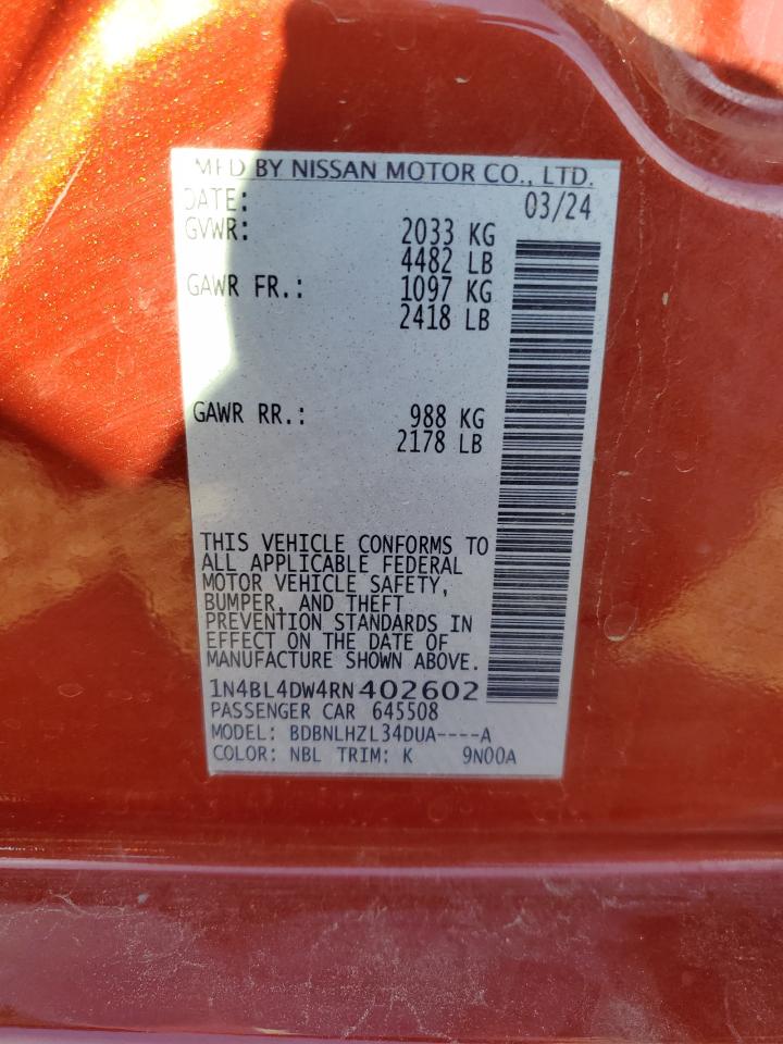 NISSAN ALTIMA 2.5 2024 г.в., Полный привод (1N4BL4DW4RN402602) из США
