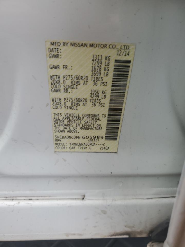 Цвет БелыйЦилиндры 8Привод 4x4 с задним приводомVIN 5N1BA0NC0FN605989Состояние Заводится и едет (проверено)Повреждение Крыша