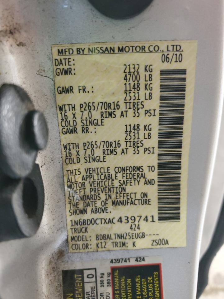 NISSAN FRONTIER 2.5 2010 г.в., Задний привод (1N6BD0CTXAC439741) из США
