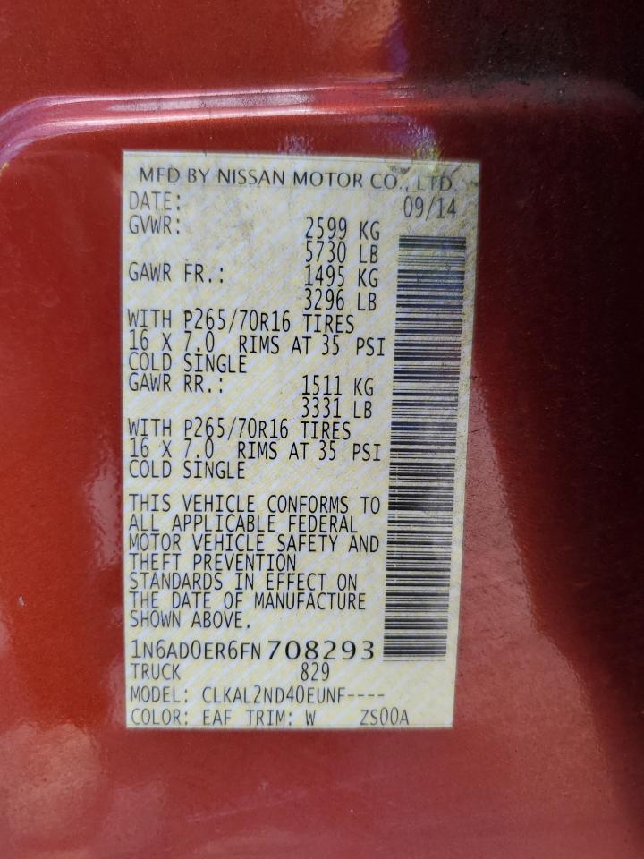 NISSAN FRONTIER 4.0 2015 г.в., Задний привод (1N6AD0ER6FN708293) из США