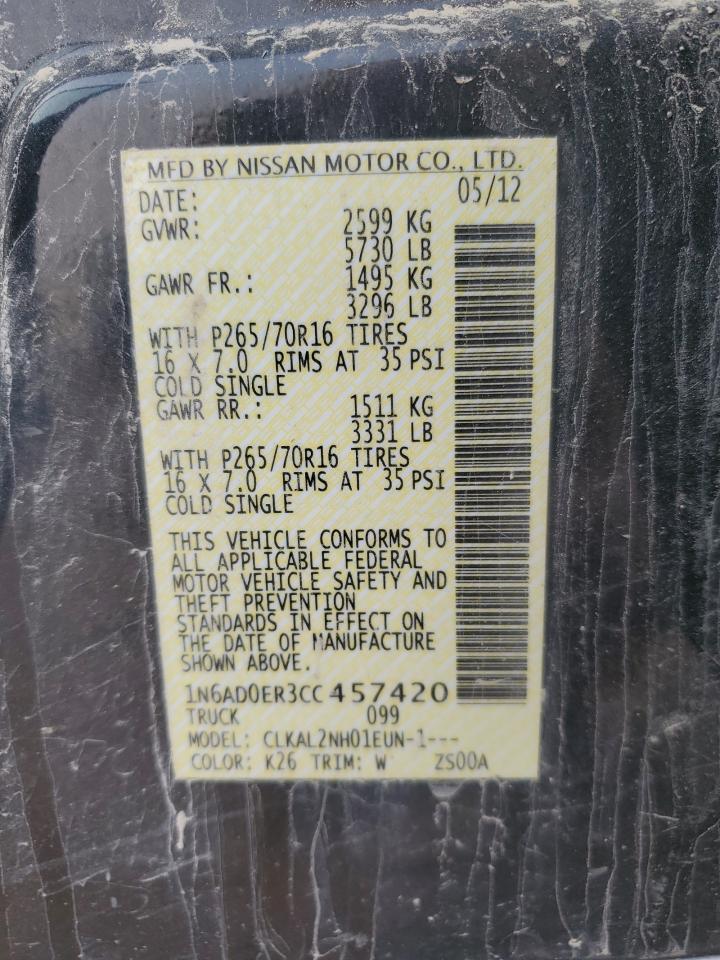 NISSAN FRONTIER 4.0 2012 г.в., Задний привод (1N6AD0ER3CC457420) из США